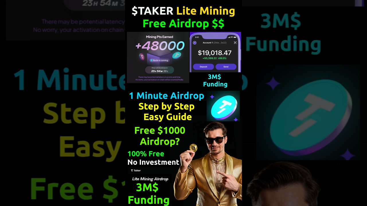 Taker Protocol Airdrop Guide. Free $1000 Potential $TAKER Lite Mining #shorts #airdrop #crypto VideoMining 0 Share FacebookTwitterGoogle+ReddItWhatsAppPinterestEmail Check on YouTube 0 Share FacebookTwitterGoogle+ReddItWhatsAppPinterestEmail